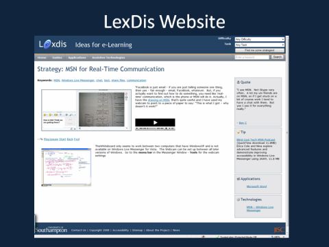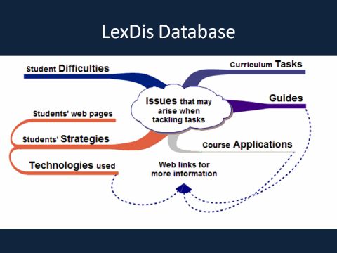 The students who participated in the LexDis project rarely mentioned their disabilities when discussing on-line strategies - the difficulties appeared to occur when they had to undertake a particular task as part of their course requirements so the design of the database was developed on this premise.